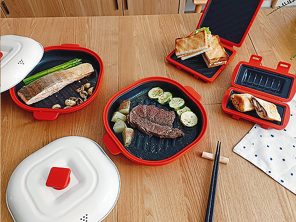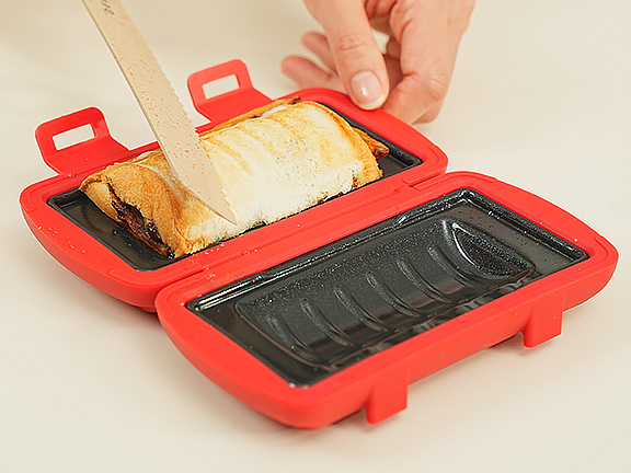 - 可將熱壓器翻面,再微波 1 分鐘,取出後稍微靜置 30 秒更酥脆。