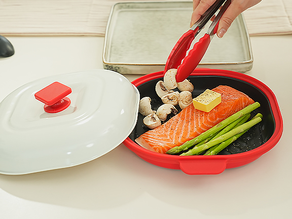 微波也能做出煎烤,將微波加熱的能量透過專利設計轉化為熱能,讓食材也能達到 酥脆、煎烤效果。