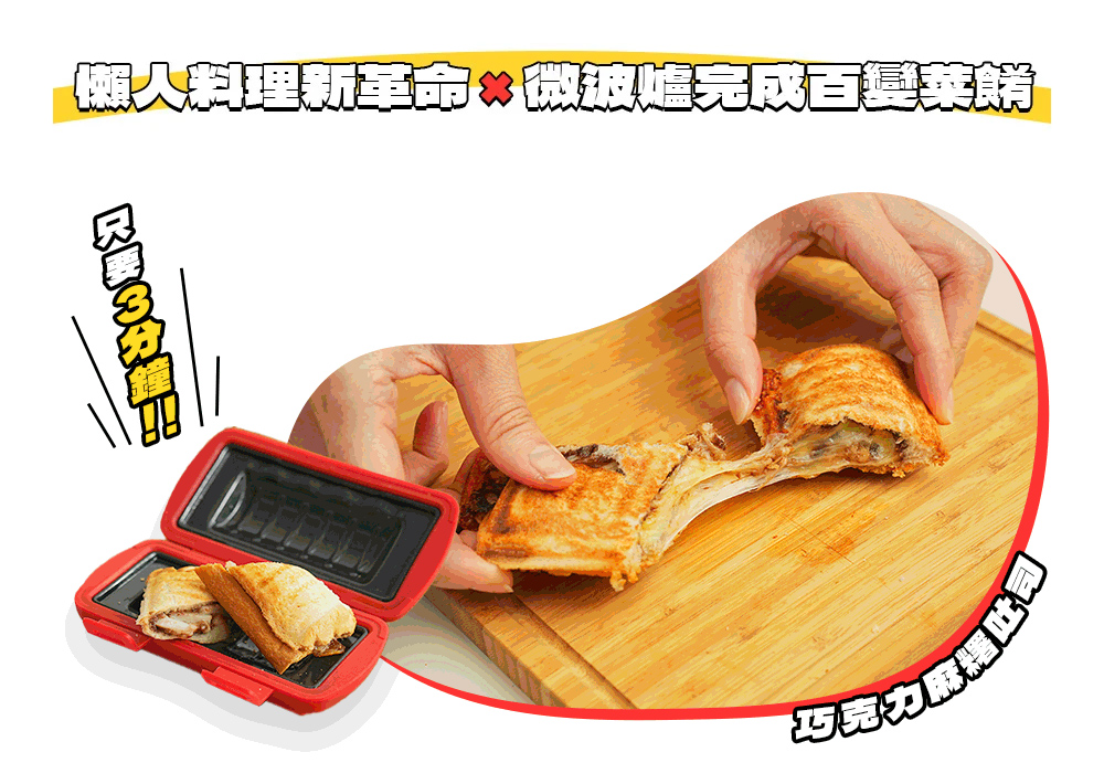 - 可將熱壓器翻面,再微波 1 分鐘,取出後稍微靜置 30 秒更酥脆。