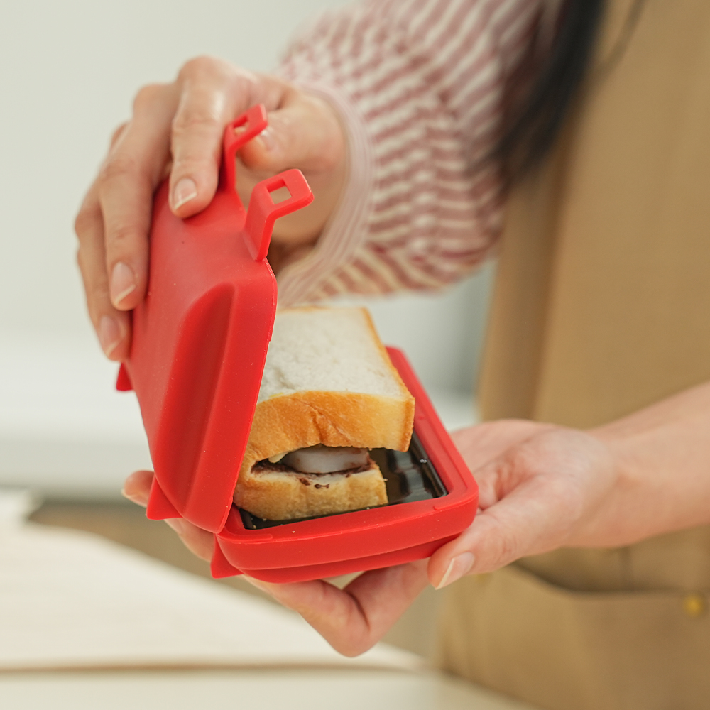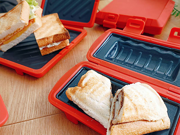 - 蓋上第二片吐司,扣緊熱壓器的矽膠鎖扣。